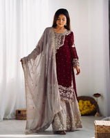 Rich Faux Georgette Stitched Suit Set with Embroidered Plazzo & Dupatta