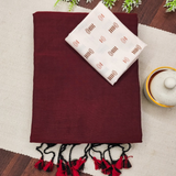 Embrace timeless elegance with our Maroon Handloom Khadi Cotton Saree, crafted from soft and breathable khadi cotton for ultimate comfort. Featuring delicate tassels on the pallu and an intricately printed blouse, this saree is a perfect blend of tradition and modern style. Available at manufacturer rates, it's ideal for wholesale buyers, resellers, and dropshipping suppliers in worldwide and beyond.