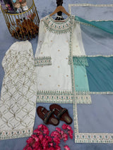 Pure Natural Crepe Designer Palazzo Suit Set with Embroidered Organza Dupatta