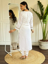 White Color Viscose Chanderi 3 piece Kurti Set With Embroidery Work