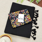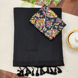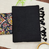 Black Khadi Cotton Saree With Kalamkari Printed Blouse
