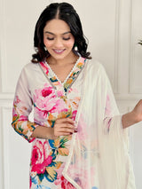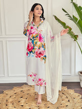 Floral Printed Kurta With Trousers & Dupatta