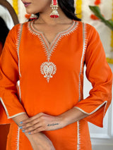 New Orange Designer Kurta Set with Embroidery and Silk Dupatta