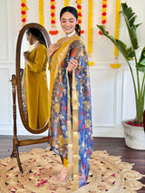 Haldi Ceremony Embroidered Kurti Set with Digital Print Dupatta