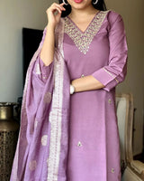 Elevate your wardrobe with this stunning Silk (PV Chanderi) Kurti Set, featuring intricate embroidery on the top and a plain silk bottom for a refined look. Paired with a luxurious Jacquard dupatta, this set is available in 4 vibrant colors and sizes ranging from S to XXL. Perfect for parties, offices, or daily wear, this kurti set blends elegance and comfort effortlessly.