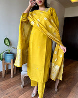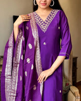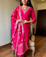 Gorgeous Silk Chanderi Embroidered Kurti Set with Jacquard Dupatta
