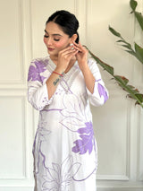 Add a touch of elegance with this White Printed Rayon Festival Wear Kurti Set. Featuring a light purple print, this kurti set includes a comfortable rayon kurta, matching pants, and a beautifully coordinated dupatta. Ideal for festivals, parties, or casual gatherings, this set offers style and comfort in one package.