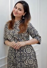Introducing the Ethnic Motifs Printed Black-Grey Cotton Blend Co-Ord Set, a perfect fusion of traditional and modern design. This stylish set features intricate ethnic motifs on a soft and breathable cotton blend fabric, offering comfort and elegance. Ideal for any casual or festive occasion, this set is part of the new Kuala Collection and is one of the best co-ord sets available in worldwide.