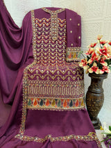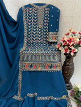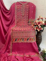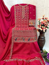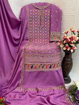 Elevate your ethnic collection with this ready-made Heavy Chinon suit, exquisitely detailed with sequence embroidery stitch work and matching dupatta.