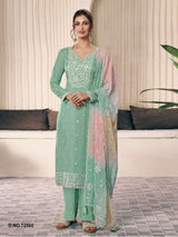 Step into timeless elegance with this premium Moonga Silk ready-made suit, detailed with fancy thread and sequin embroidery for a luxurious finish.