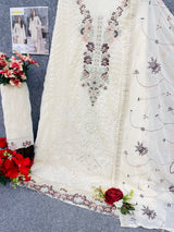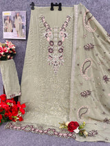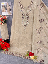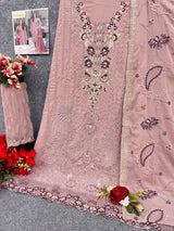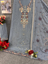 Experience premium elegance with this fully stitched Fox Georgette suit featuring intricate multi-thread embroidery and delicate handwork.