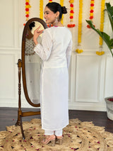 Designer White Chanderi Suit Set with Embroidered Work and Printed Dupatta