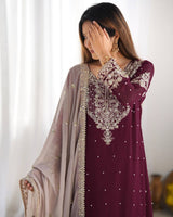 Heavy Faux Georgette Embroidered 3-Piece Suit Set