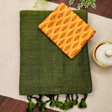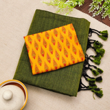 Mehndi Handloom Cotton Saree & Designer Blouse