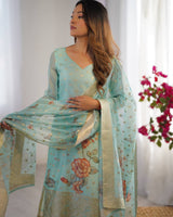 Partywear Chanderi Silk Dress Set with Digital Print Dupatta