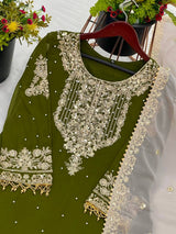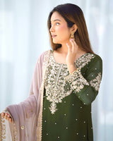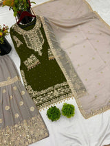 Step into elegance with this fully stitched designer Plazzo set crafted from heavy faux georgette, embellished with intricate embroidery, dori-sequence, and rivet moti work. Designed for comfort and style, this set includes a beautifully detailed top, matching plazzo, and a graceful dupatta — perfect for festive occasions or special events. Premium quality and available in a wide range of sizes.