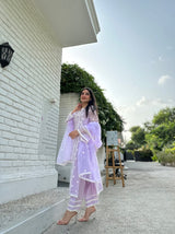 This Women's Latest Designer Organza Kurti Set with Dupatta offers a sophisticated and elegant look for any occasion. The kurta features three-quarter sleeves and is paired with a purple designer readymade pant, beautifully adorned with printed embroidery work. The set is completed with a matching dupatta, making it a perfect blend of style and comfort, ideal for festive or formal events in worldwide.